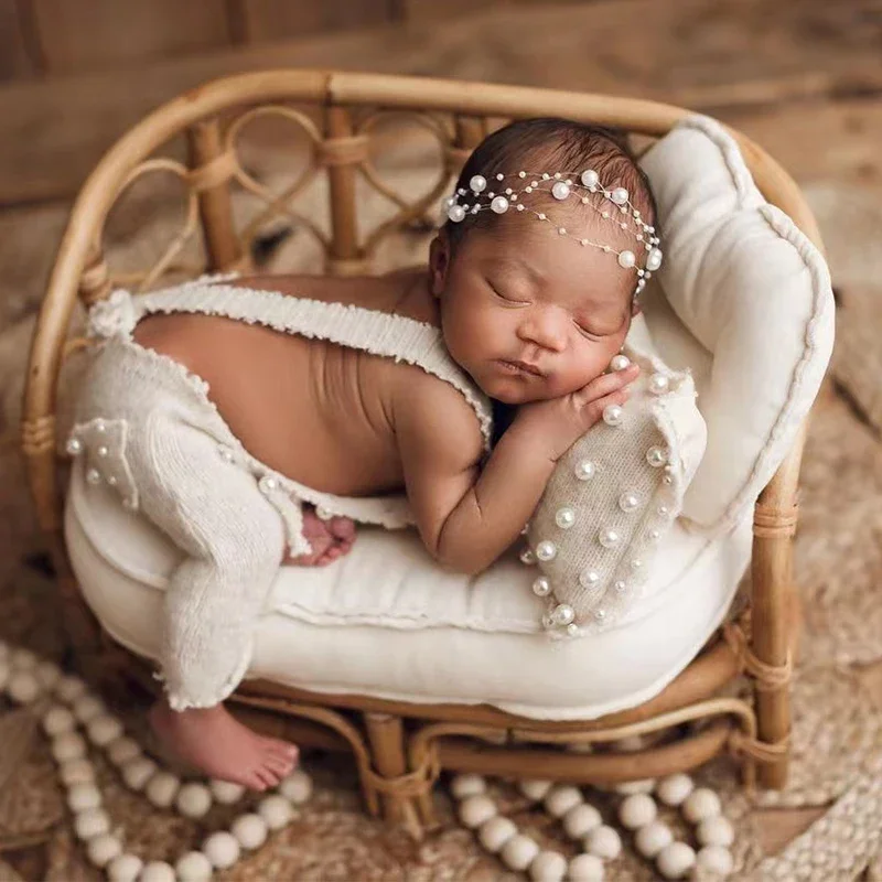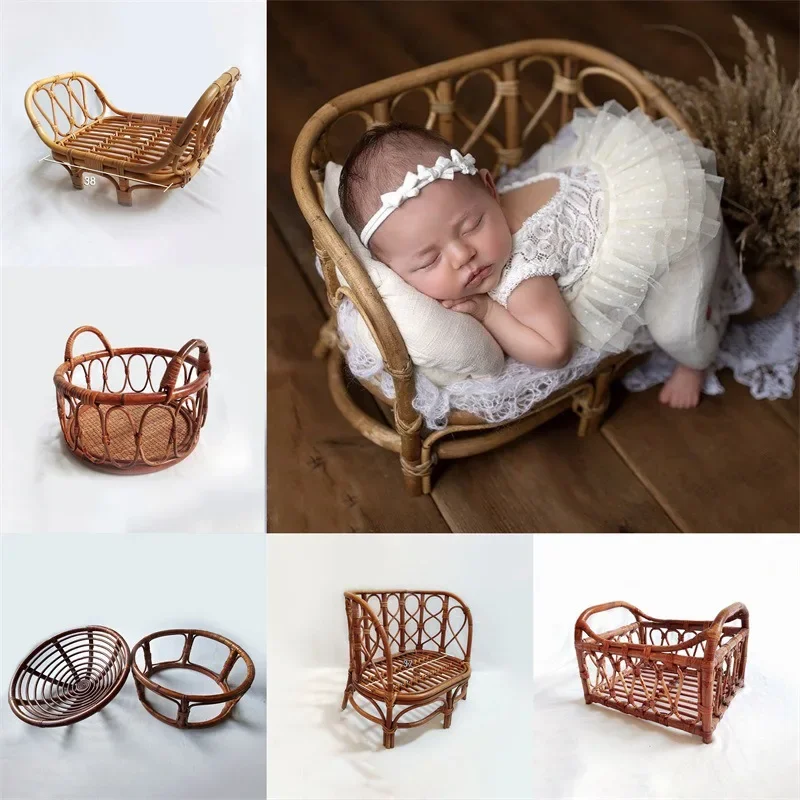Wooden Baby Crib Newborn Photography Props Bed Sofa Rattan Chair Furniture Bench Fotografia Studio Posing Sofa Accessories